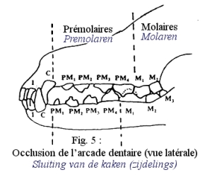 Ce que tout amateur qui se respecte est sensé connaître, mais qui n'est plus suffisant pour poser un diagnostic complet sur la perfection ou les manquements de la denture. Il est donc indispensable de se renseigner d'avantage et quoique le développement qui va suivre se retrouve sous l'une ou l'autre forme plus détaillée dans tous les manuels d'anatomie, nous pensons toutefois, pour l'avoir étudié en détails nous-même, et en parlant directement d'amateur à amateur, pouvoir le rendre plus assimilable en mettant bien en évidence certaines subtilités.